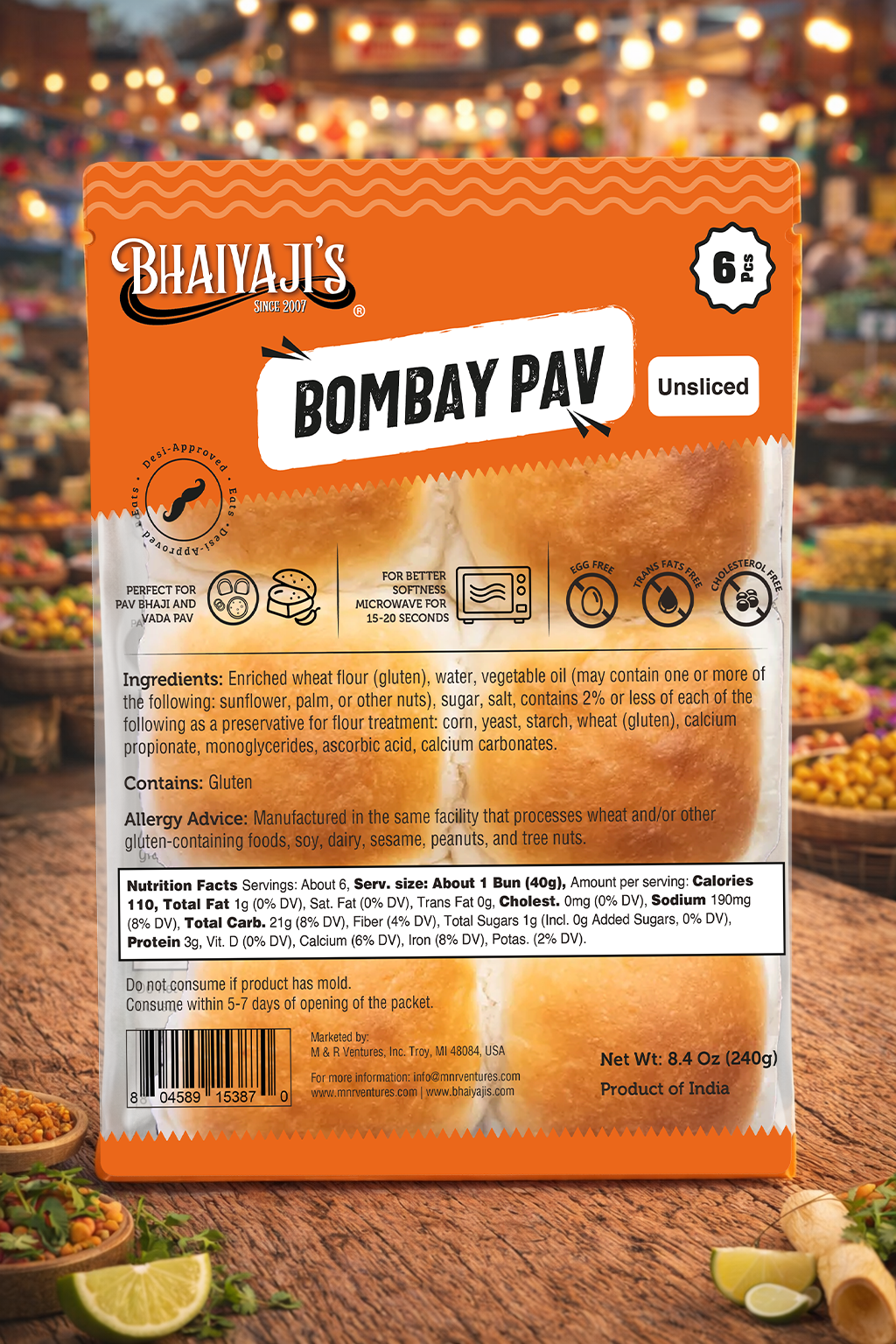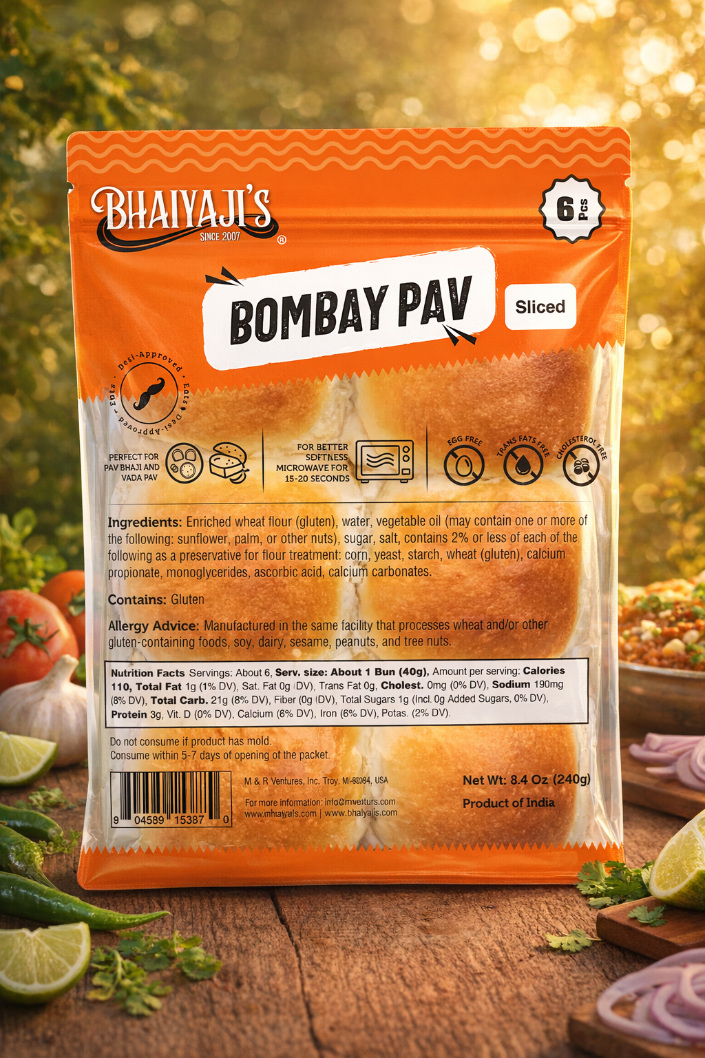 Soft, fluffy Bombay pav that’s pre-sliced for easy use and quick serving. Perfect for pav bhaji, vada pav, or simple comfort meals at home. Warm it for a few seconds to enjoy fresh, bakery-style softness every time.