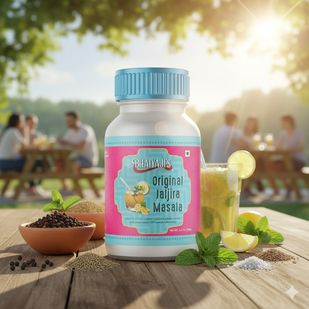 "Classic Indian Refresher" Experience the quintessential taste of India's favorite summer cooler. Our Original Jaljira Masala is a vibrant blend of roasted spices, black salt, and dry mango, creating a zesty, tangy, and slightly spicy drink. Mix with water for an invigorating appetizer or a unique mocktail.